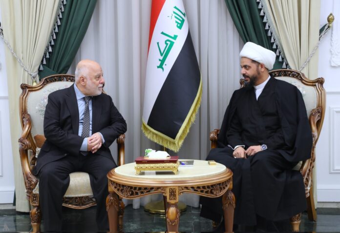قيـ س الخـ زعلي، استقبلَ في مكتبِهِ ببغداد، رئيسَ مجلس الوزراء الأسبق حيدر العبادي، حيثُ جرى، خلالَ اللقاء، التداول بمجملِ الأوضاعِ السياسية في البلاد”.