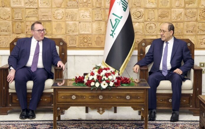 المالكي يبحث مع القائم بالأعمال الأميركي تشكيل الحكومة الجديدة بحث رئيس ائتلاف دولة القانون، نوري المالكي، مع القائم بأعمال سفارة الولايات المتحدة الأميركية لدى العراق، جوشوا هاريس، تطورات الوضع السياسي والانتخابي ومسار تشكيل الحكومة الجديدة، موضحاً حرص الإطار التنسيقي والقوى الوطنية في تشكيل حكومة قوية تعالج كل القضايا العالقة داخلياً وخارجياً. https://athrnewz.com/#أثر_news