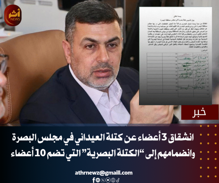 Uncategorized انشقاق 3 أعضاء عن كتلة العيداني في مجلس البصرة وانضمامهم إلى “الكتلة البصرية” التي تضم 10 أعضاء.https://athrnewz.com/#أثر_news By علي حيدر - ديسمبر 14, 2025 0 22