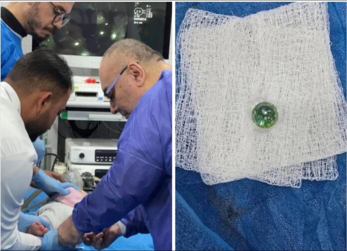 نجح فريق فريق طبي في مستشفى بعقوبة التعليمي، من انقاذ حياة طفل عمره سنة واحدة ابتلع “كرة زجاجية”.