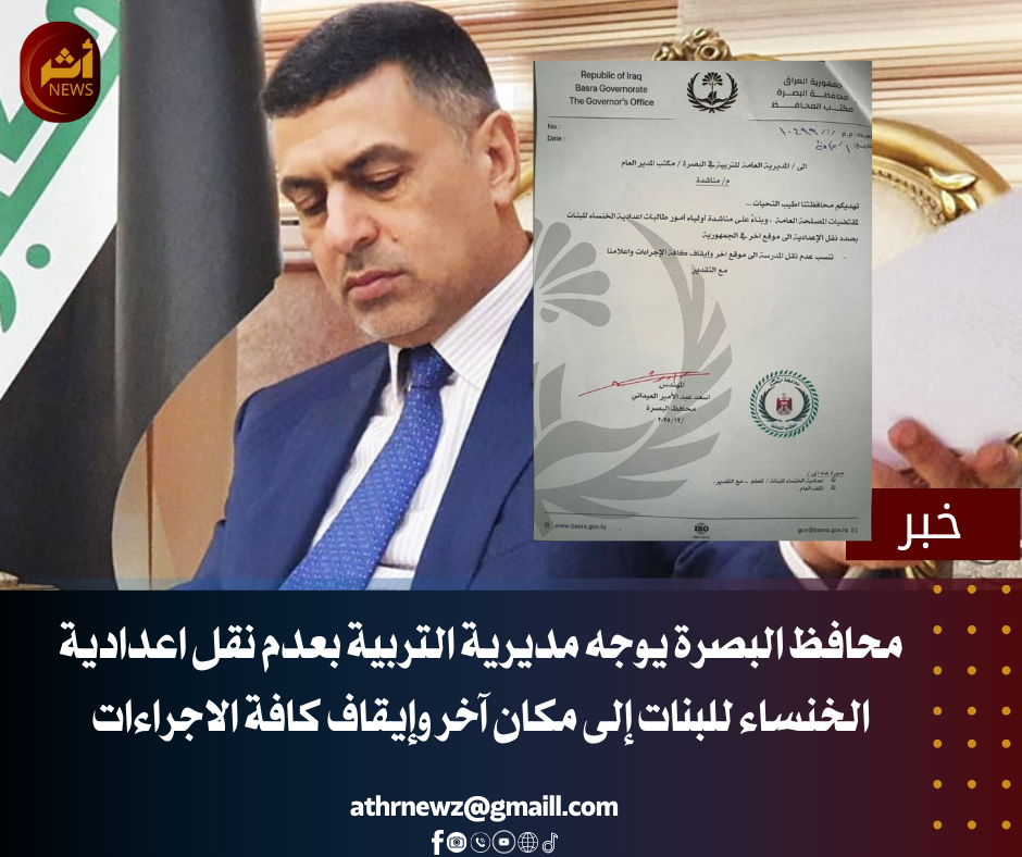 Uncategorized محافظ البصرة يوجه مديرية التربية بعدم نقل اعدادية الخنساء للبنات إلى مكان آخر وإيقاف كافة الاجراءات. https://athrnewz.com/#أثر_news By علي حيدر - ديسمبر 1, 2025 0 19